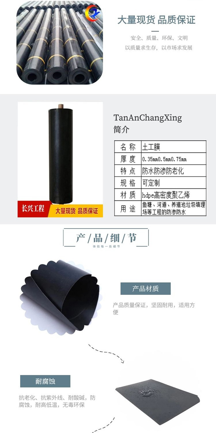 1.5mm土工膜施工方法 填埋場復合土工膜批發 長興牌